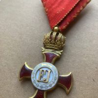 Mint oly sokan a monarchiás anyagok gyűjtői közül, én is rajongok az arany és ezüst érdemkeresztekért. Ez a darab különlegesnek nevezhető, tele zománcos medallionja miatt. Hátoldala is zománcos. Bronz anyagú, gyártójel nélküli darab, az arany anyagú Rothe féle darabokat juttatja az ember eszébe, de szerintem nem az. Szalagja is eredeti, de arról nem vagyok meggyőződve hogy világháborús adományozás, szerintem inkább 19. századi darab és eredetileg piros szalagon adományozhatták.