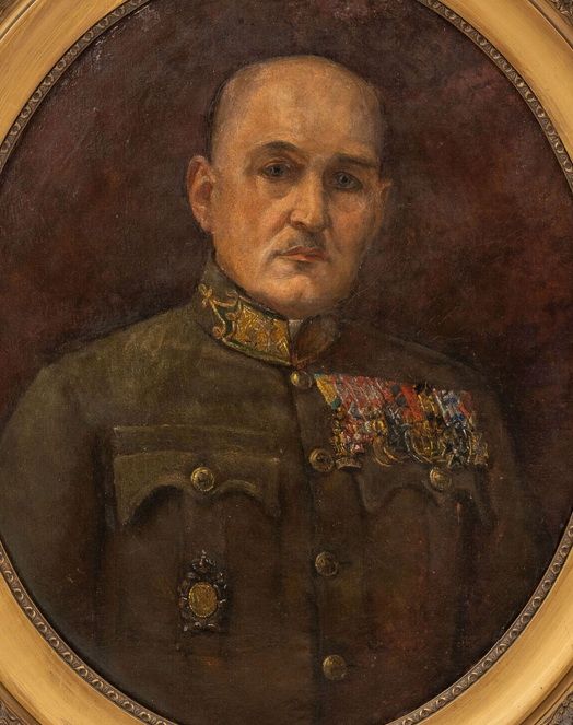 Vajon ki ő? Szerintem sokkal közelebb jutunk a megfejtéshez, ha megfejtjük a jobb zubbonyzseben viselt jelvényt, ami szerintem egy első világháborús közös ezred jelvénye. Először azt hittem, hogy a 69. Hindenburg gyalogezred, de jobban megnézve nem.
